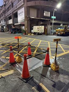 水利局表示,接獲通報後迅速派員趕赴現場勘查,初步研判疑因地下污水管線破損,進而造成路基流失,引發路面下陷。現場已即時完成交通維持及安全防護措施,並先行進行灌漿作業完成緊急修復。