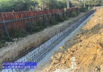 新建滯洪池,有效滯洪體積約19.5萬噸,完工後可削減曹公新圳洪峰流量約47cms,預估降低八德東路橋至仁勇路橋段水位約33~71cm,本案自114年7月4日開工,目前工程進度78.89% (截至115/4/21),本案預計於115年8月30日竣工